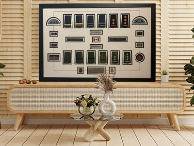 I have designed a wide array of frame layouts. See which one suits your needs and reach out to start the process *Note that components are included at each listed price and client gets final say on matting colours, plaque text and glass.
